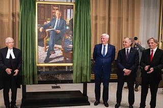 The official portrait of former prime minister Stephen Harper was unveiled during a ceremony at the Sir John A. Macdonald Building in Ottawa on Tuesday.