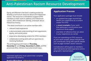 The Elementary Teachers’ Federation of Ontario is asking educators with “lived experience” to help develop a new resource on “anti-Palestinian racism.”