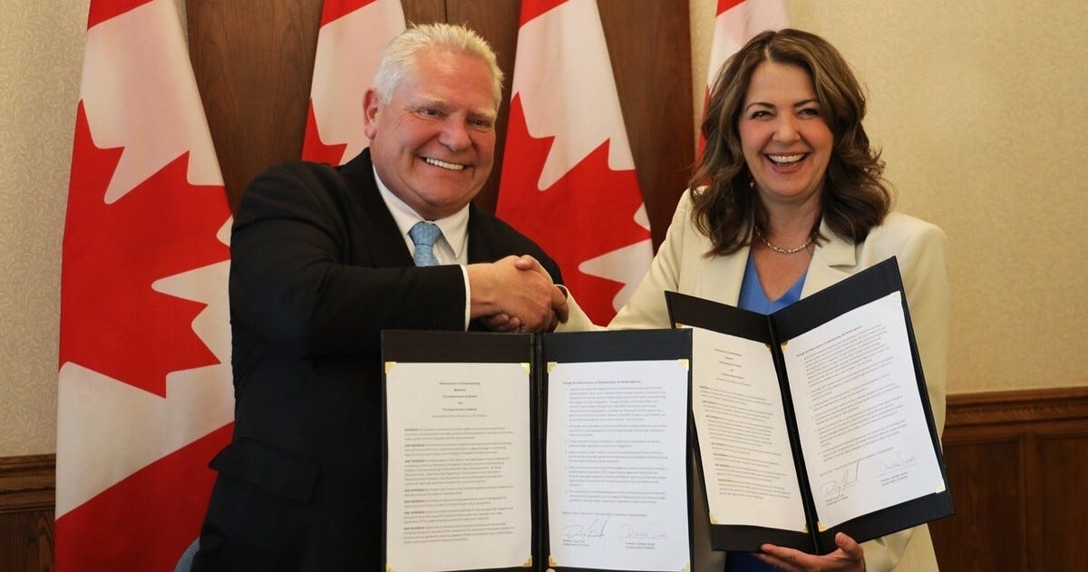 Alberta Premier Danielle Smith and Ontario Premier Doug Ford signed a new memorandum of understanding to eliminate trade barriers between their provinces.