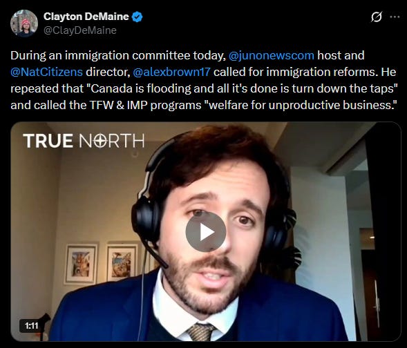 Alexander Brown, a Juno News host and the director of the conservative taxpayer advocacy group the National Citizens Coalition, called for a range of immigration reforms.