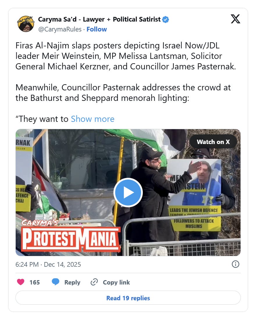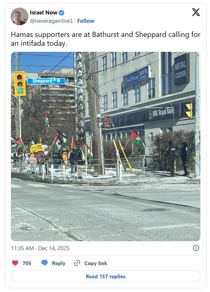Following a devastating mass shooting at a menorah lighting event at Bondi Beach in Australia, anti-Israel protesters began targeting Hanukkah events just hours after the attack, including in North York and Toronto, while separate protests later targeted a Christmas market in Montreal.