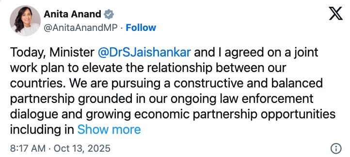 The renewed engagement follows Prime Minister Mark Carney’s September meeting with Indian Prime Minister Narendra Modi on the sidelines of the G7 Summit in Alberta, where both leaders agreed to “calibrated measures” to rebuild trust and reappoint high commissioners.