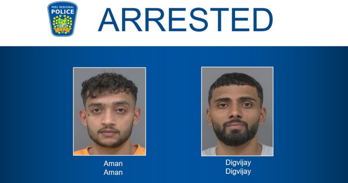 Authorities said Tuesday that Aman Aman and Digvijay Digvijay—two “21-year-old men from Delta, B.C.”—were tracked back to Delta and arrested on May 28.