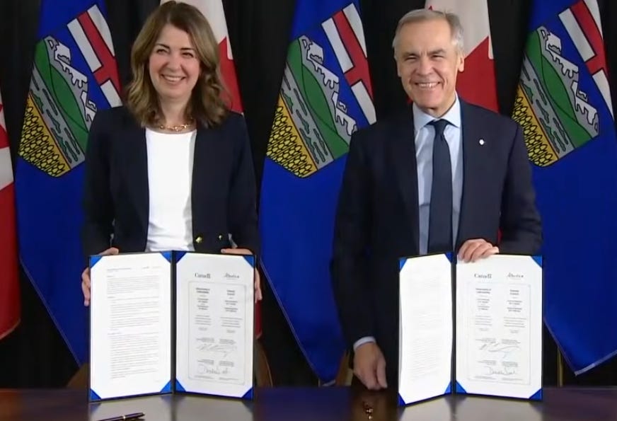 Mark Carney and Premier Danielle Smith have signed a sweeping new memorandum of understanding, (MOU), that clears the path for a one million barrel per day pipeline to Asia.
