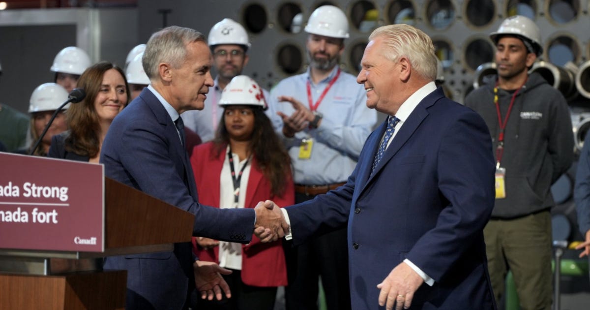 Prime Minister Mark Carney and Ontario Premier Doug Ford announced Thursday a new co-operation agreement on environmental and impact assessments that adopts a “one project, one review” approach for major developments in Ontario.