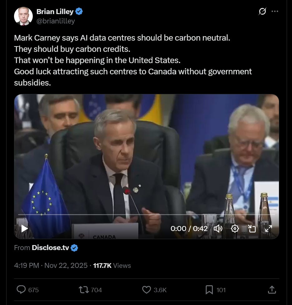 “We can catalyze enormous private sector demand for these credits by committing AI data center development to be carbon neutral,” Carney told global leaders.