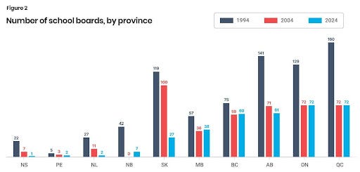 Since the 1960s, provincial governments have consolidated thousands of small, community-based school boards into a few large regional authorities. In Ontario alone, the number of boards plummeted from about 3,700 in 1961 to just 72 today. Similar reductions occurred across the country, despite relatively stable student enrolment. The result is larger bureaucracies with layered administration and limited local accountability.