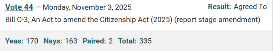 Bill C-3, “An Act to amend the Citizenship Act,” passed with 169 in favour to 163 against in the House of Commons on Monday after the NDP voted to reverse the amendments made by the Bloc Québécois and Conservatives during a committee. The NDP had no say at the committee level, as they do not hold official party status.