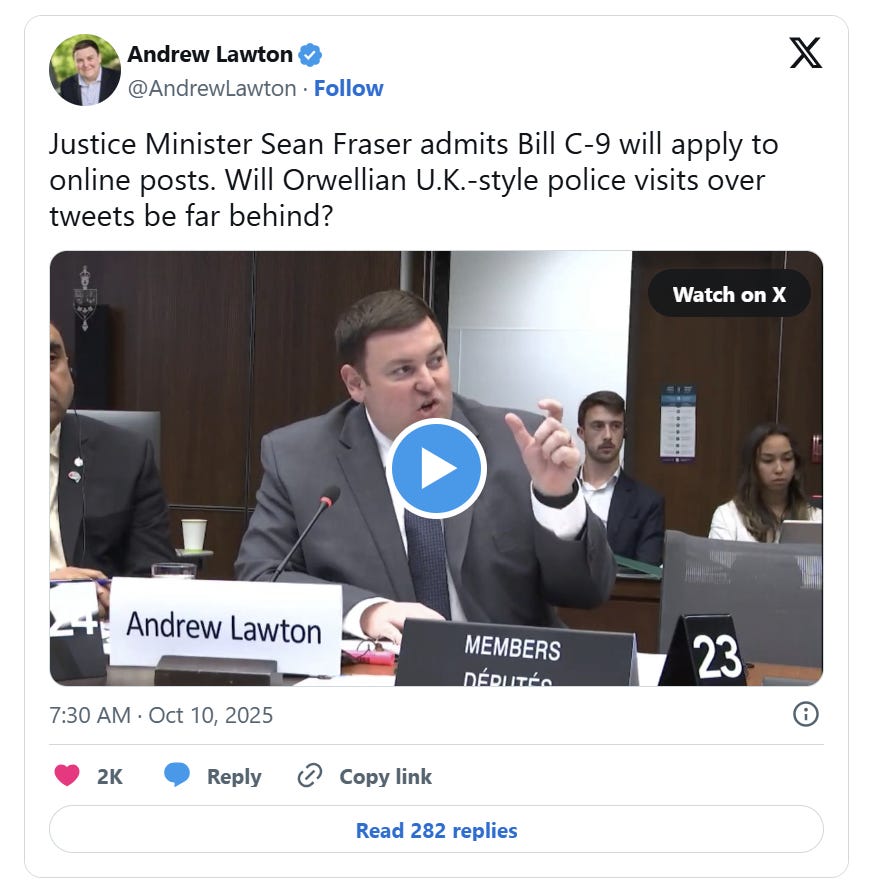 At a House of Commons Justice Committee meeting, Conservative MP Andrew Lawton questioned whether the Combatting Hate Act would allow online speech to be prosecuted under new “hate-motivation” provisions. Fraser confirmed the bill “will apply equally online as it does in real communities,” meaning social media posts could fall under its scope.