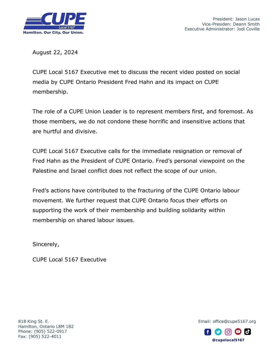 Hahn remains president of CUPE Ontario until the May 2026 elections.