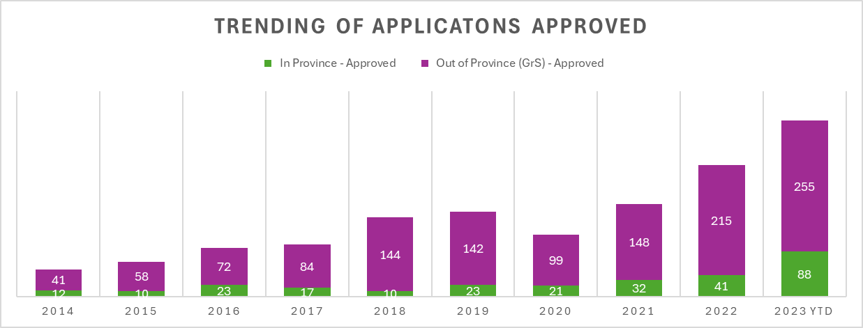 The Citizen’s Alliance of Nova Scotia provided True North with demographic data obtained through freedom of information requests. The data shows age breakdowns of both surgical and non-surgical gender-related interventions. The group has been requesting information from the provincial government on behalf of concerned mental health therapists fearful of professional repercussions should they be identified. The documents include internal emails, policy memos, and detailed statistical breakdowns.
