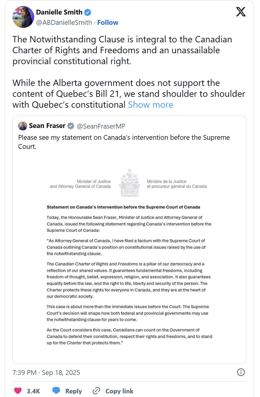 “This case is about more than the immediate issues before the Court. The Supreme Court’s decision will shape how both federal and provincial governments may use the notwithstanding clause for years to come,” said Fraser.