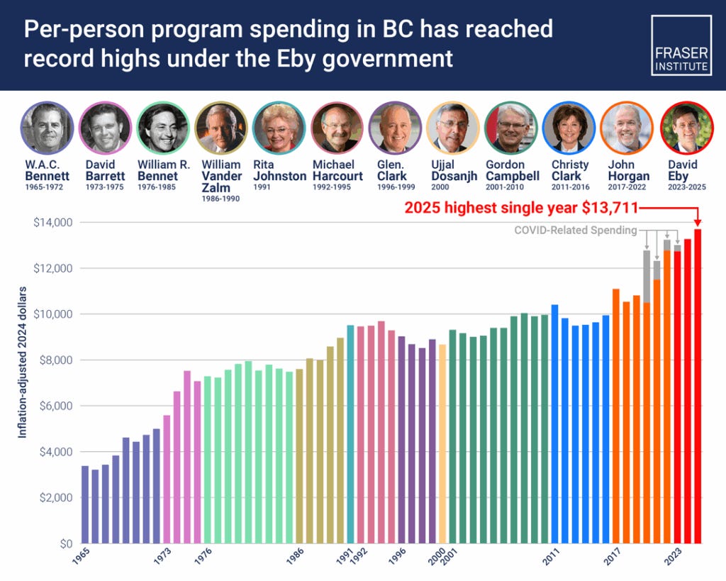 British Columbia’s NDP government under Premier David Eby is overseeing the highest level of per-person provincial program spending on record.