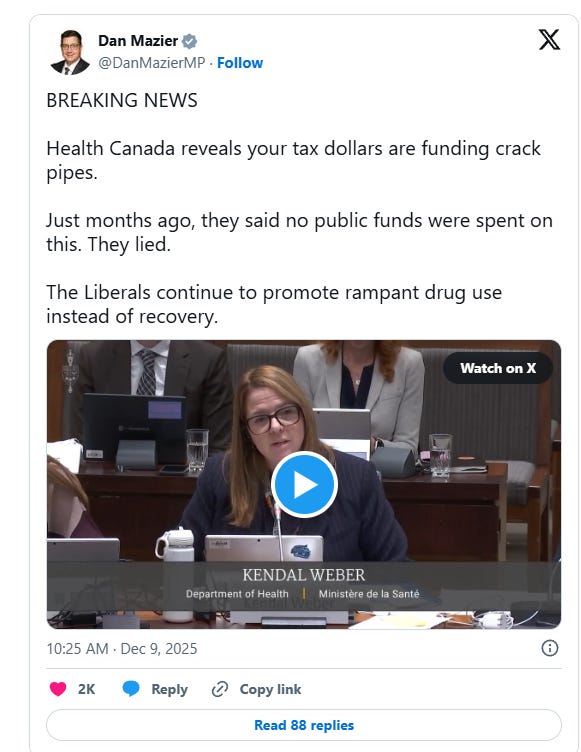 Health Canada finally admitted that, yes, Canadian tax dollars are being used to fund drug paraphernalia like crack pipes, directly contradicting testimony given to a health committee just weeks earlier.