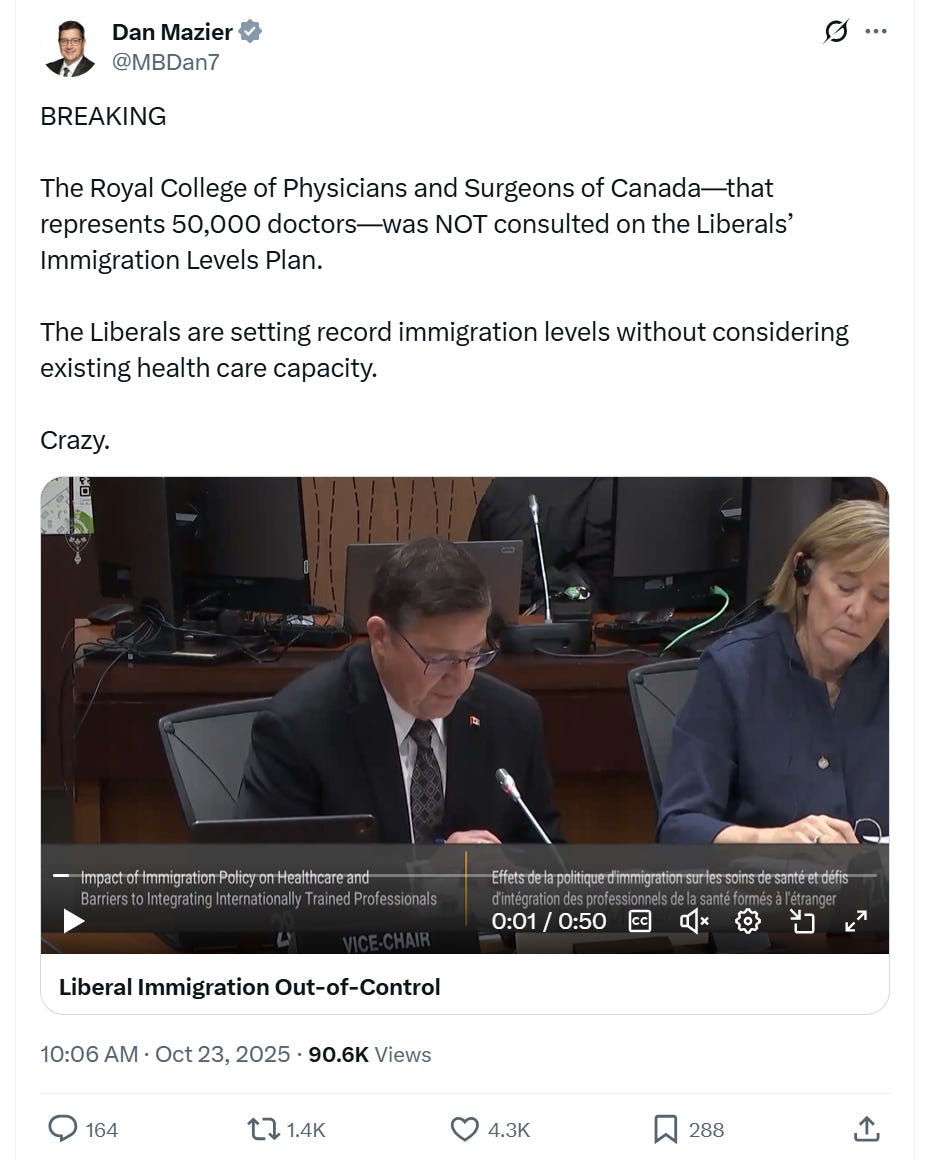 During the committee, the director of Internationally Trained Physicians of Canada, Dr. Therese Bichay, noted that 6.5 million Canadians are without family doctors and Canada has a shortage of 23,000 general practitioners. When asked, she similarly said that there is a disconnect between Canada’s immigration system and its healthcare system.