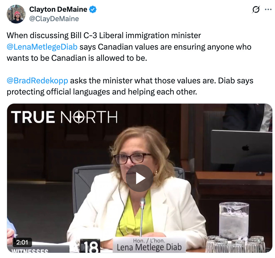 Redekopp pointed out that in May 2022, Diab said that “fostering bilingualism was of personal priority” to her, but the bill lacks any language requirements tied to citizenship. Diab responded, saying that she “hopes” many of the children and infants granted citizenship will learn English or French.