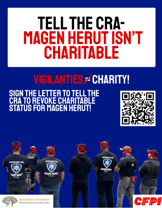 Just Peace Advocates, a pro-Palestinian organization, launched a public campaign labeling the volunteers a “militia” and “vigilante group,” urging the Canada Revenue Agency to revoke the charity’s status.