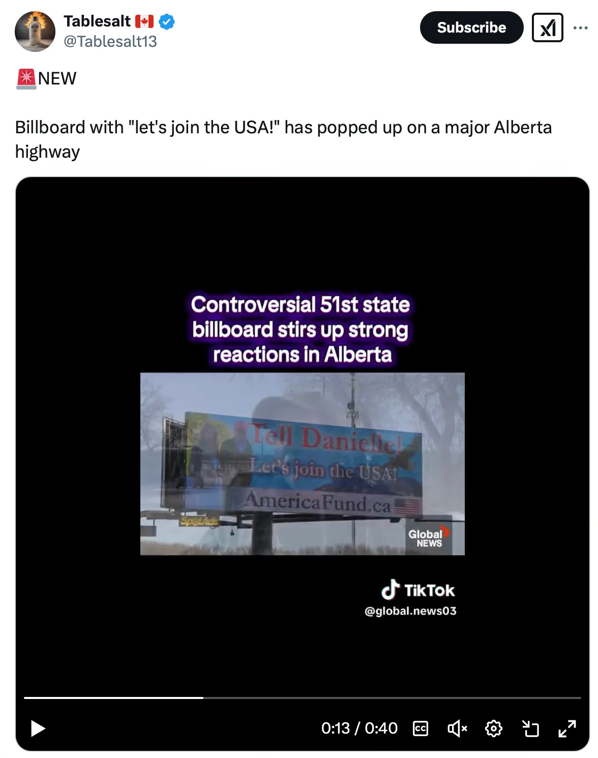 "Let's join the USA!" Fiery Billboard in Alberta Sparks 51st State Debate