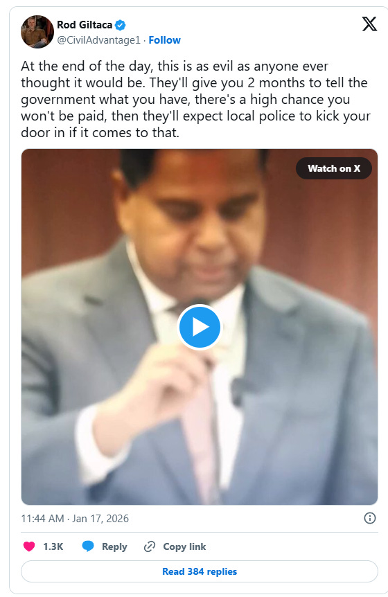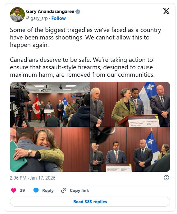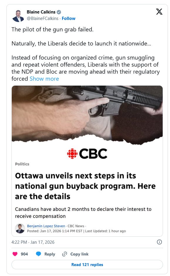 Rod Giltaca, CEO of the Canadian Coalition for Firearms Rights, called the plan “as evil as anyone ever thought it would be” in a post on X, warning that owners could be forced to compete for insufficient compensation, potentially receive nothing, and still face police enforcement.