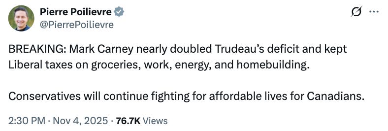 Conservative Leader Pierre Poilievre denounced the plan, saying Carney’s government is the “most expensive in Canadian history” while declaring that the Conservatives would vote against the Liberals: “On behalf of all the Canadians who can no longer afford to eat, heat or house themselves because of Liberal inflation, we Conservatives cannot support this costly Liberal budget.”
