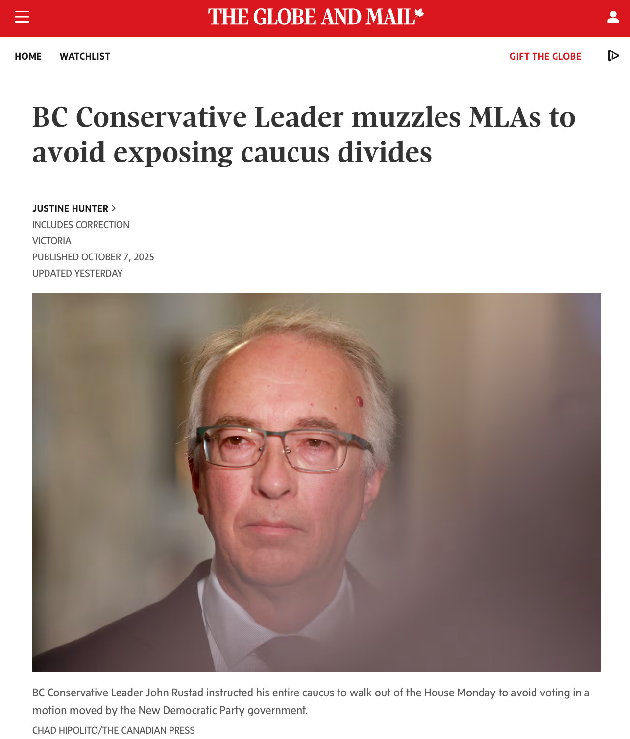Rustad so desperately wants to attract NDP voters that he chooses to alienate the Conservative base that propped him up in the 2024 election.