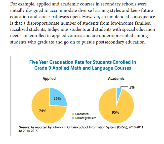 The records obtained by True North show that these theories were used to implement Ontario’s recent de-streaming policy, which eliminated separate academic and applied tracks for Grade 9 students. The model was presented to help teachers implement de-streamed classrooms, especially in math.