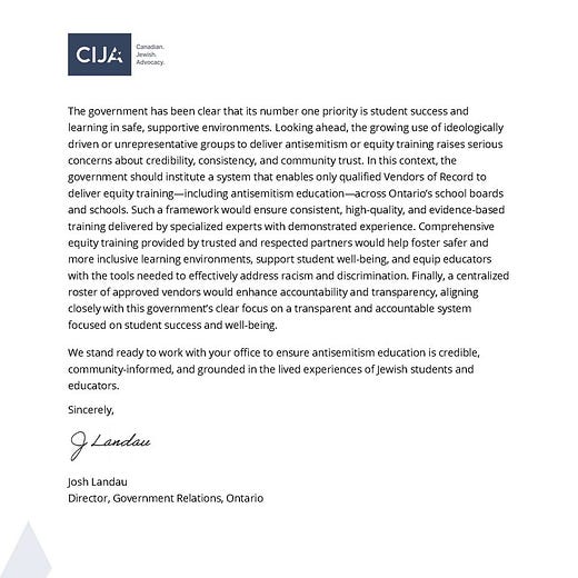 The union’s choice of community representative, a group active in Palestine solidarity movements, drew criticism from the Centre for Israel and Jewish Affairs (CIJA). CIJA responded by sending an open letter to Education Minister Paul Calandra, voicing their opposition to the appointment.