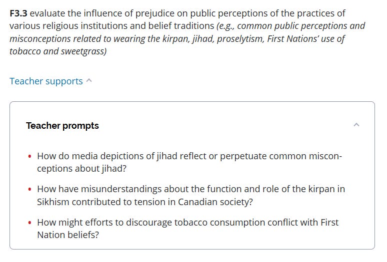The official Ontario secondary school curriculum encourages educators to teach jihad as a “spiritual struggle,” omitting the global terrorism carried out in its name, and instructs teachers to examine “misconceptions about jihad” and “media portrayals of jihad.”