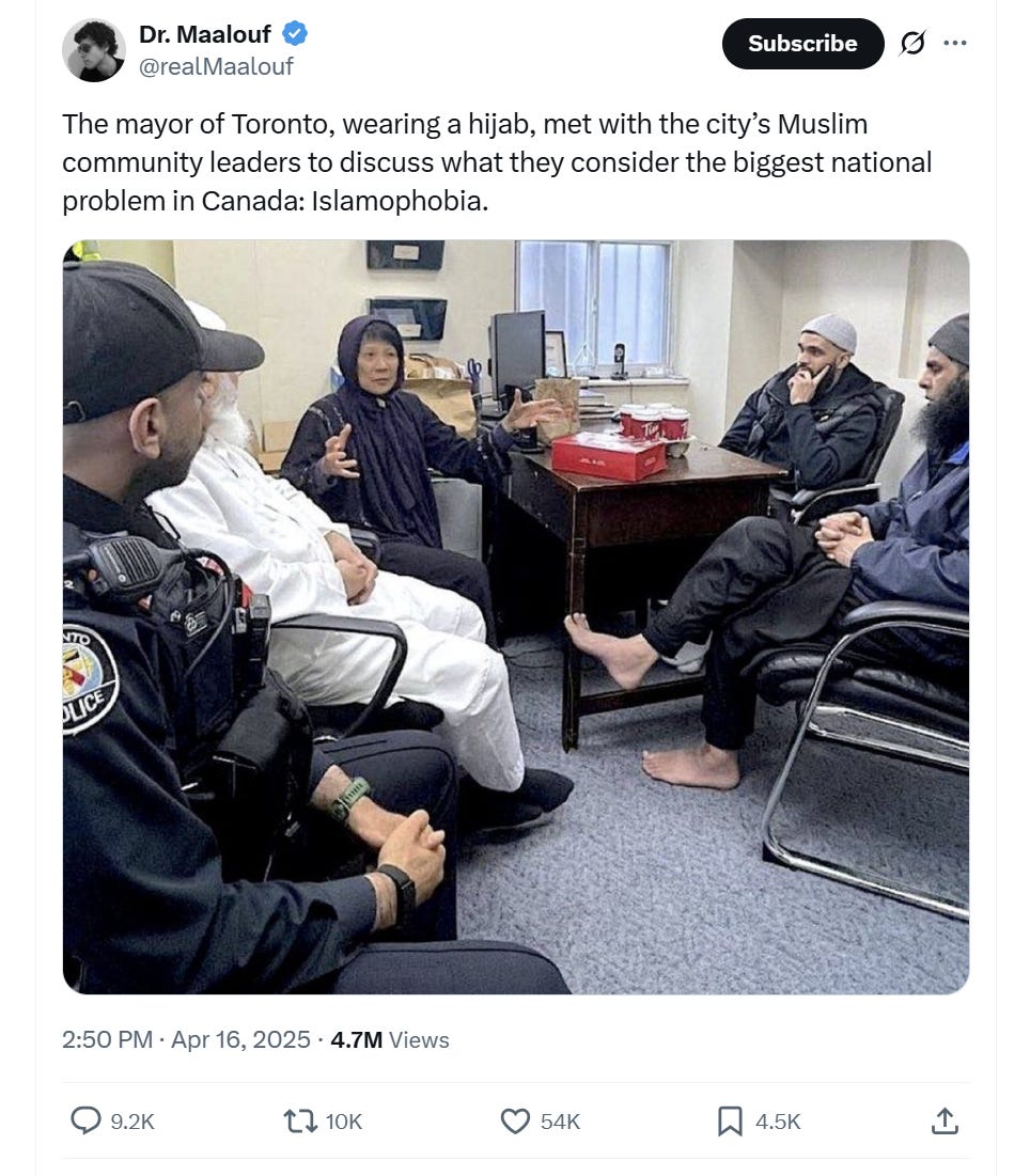 Knowing full well, she would yet again be under fire for not serving all the people of Toronto (and she is), she did not post her appearance on X or on her FB account—a cowardly move.