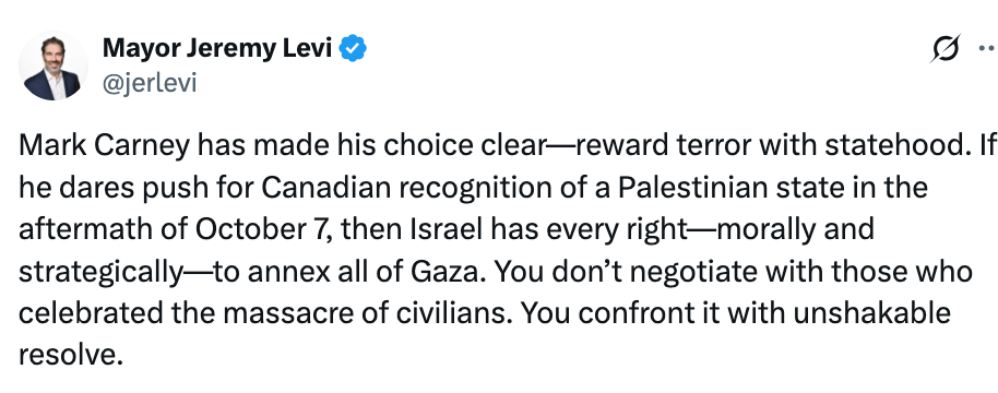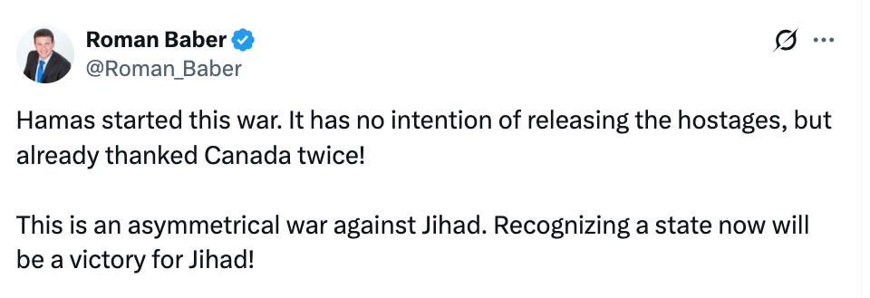 Look I knew Carney would be very bad for Canadian Jews and said so repeatedly during the election — even repeatedly wasting my breath arguing with Liberal Jews that he made it clear where his sympathies lie.