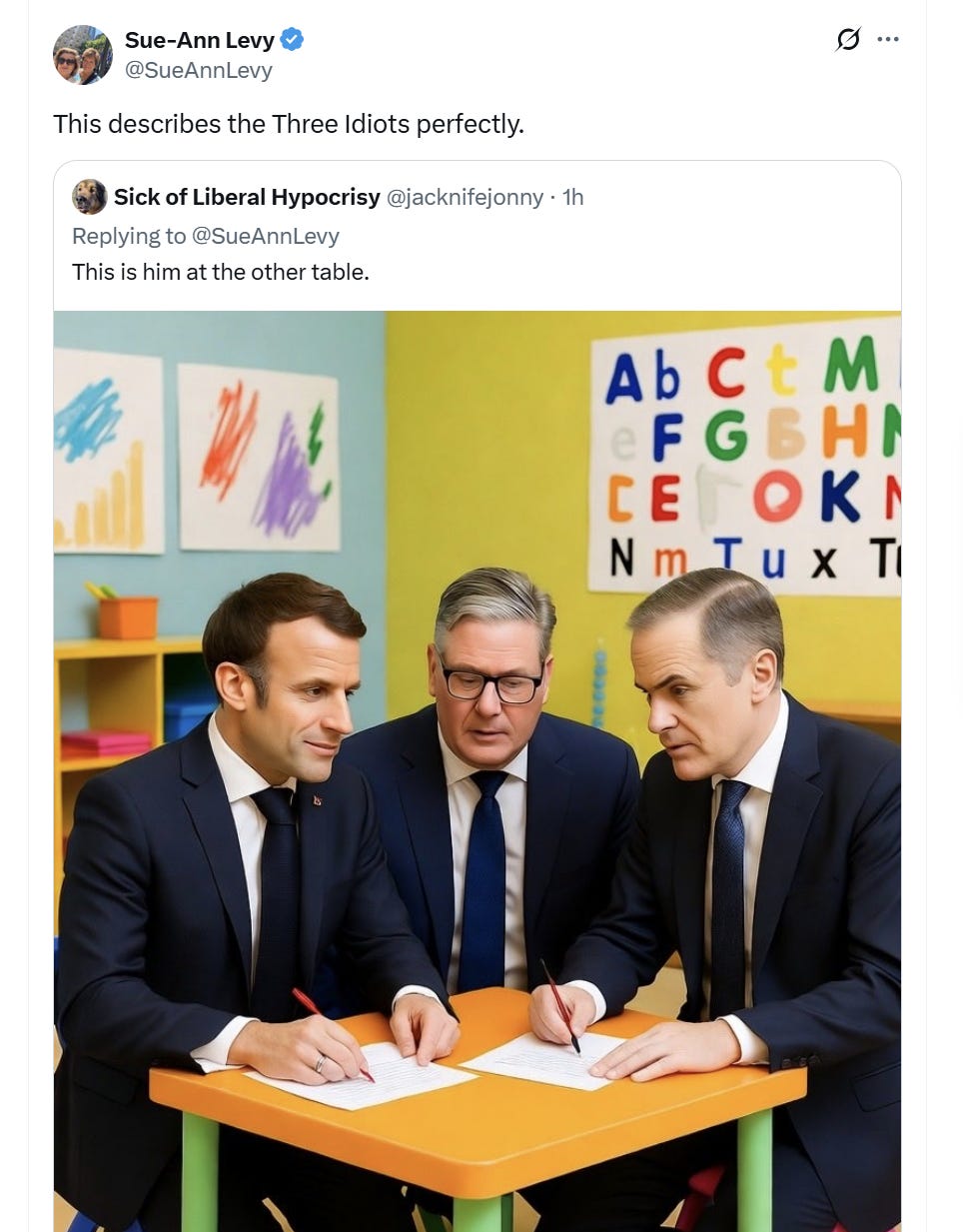 Carney and his two pals, UK president Keir Starmer and French president Emmanuel Macron are said to have made peace harder with their dangerous move.