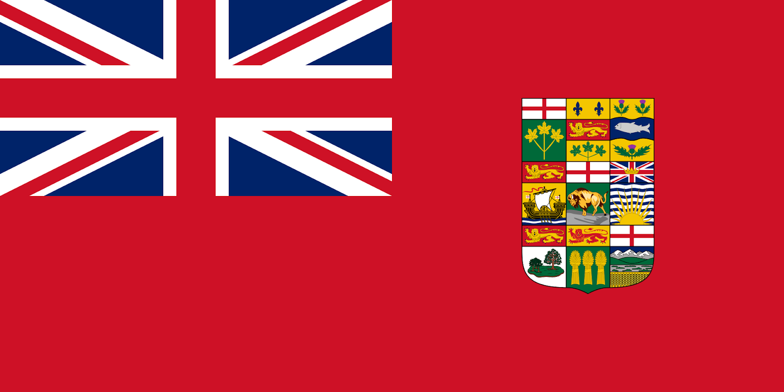 Initially this civil flag was the Union Jack in the top left corner, a red backdrop, and a crest composed of each of the province’s coats of arms. As more provinces were admitted into the Confederation, this crest became increasingly unwieldy.