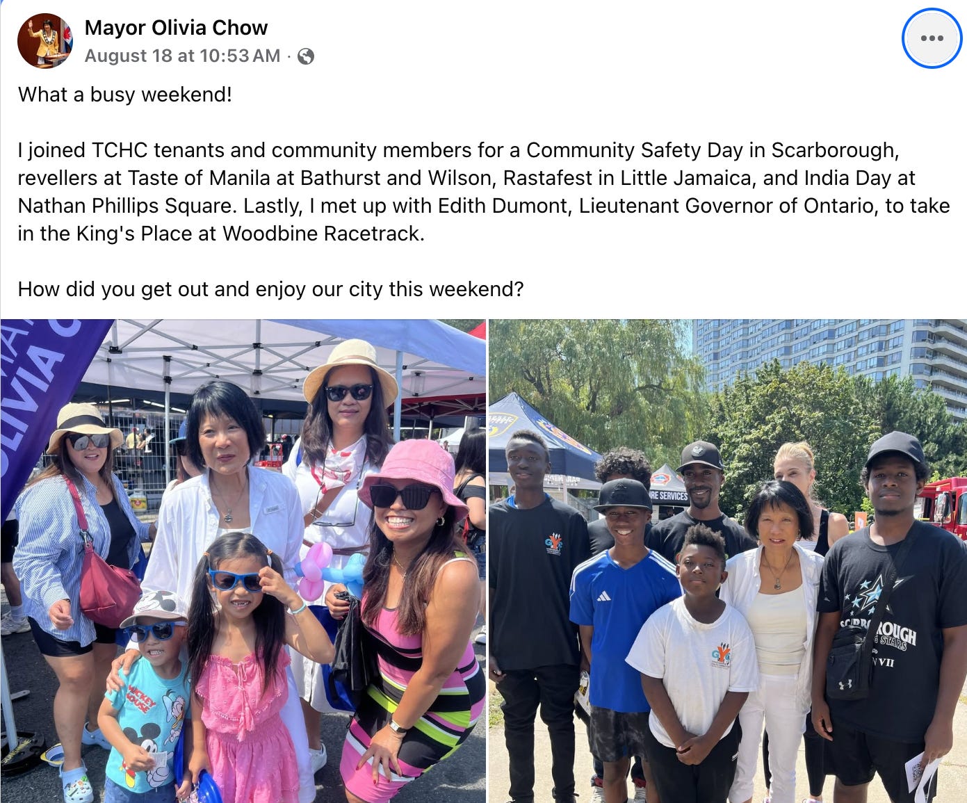 The joke being shared in Toronto is that Mayor Olivia Chow dances while the city burns.