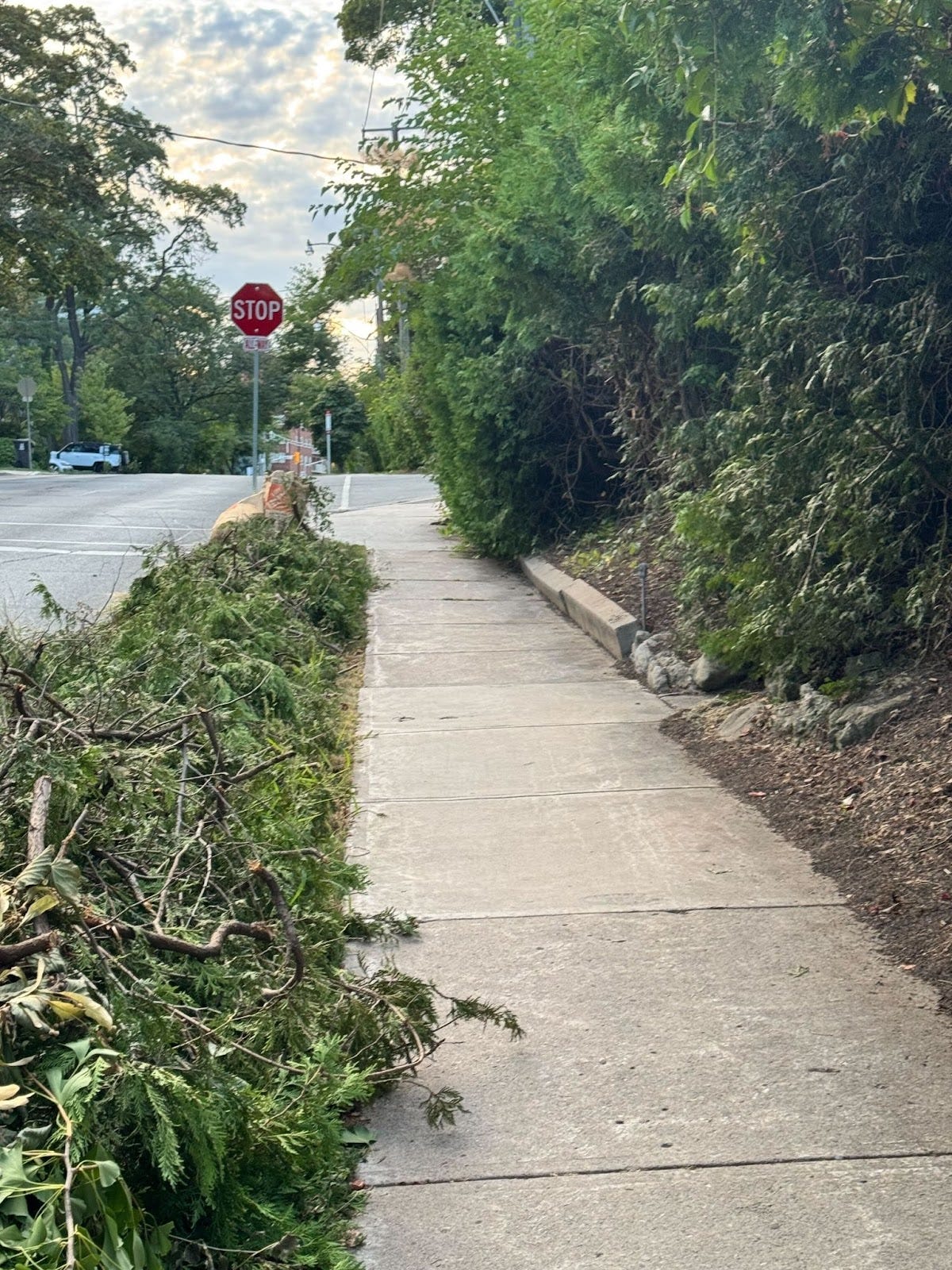 Hacked is a good word because they left all the brush behind on the boulevard ,where it has remained for days — kind of defeating the purpose of clearing the boulevard.