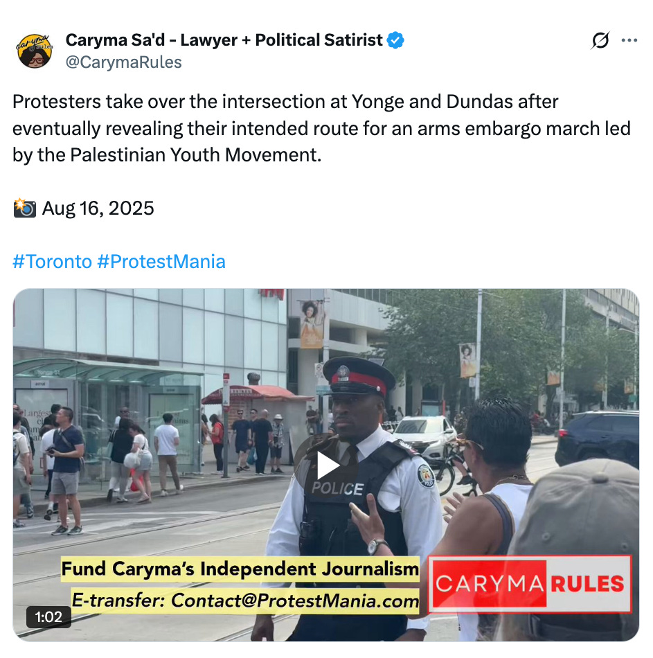 Meanwhile, on that very same day as she was waving the Jamaican flag, there was yet another protest at Yonge and Dundas by a cast of nearly 2,000 Jew haters.