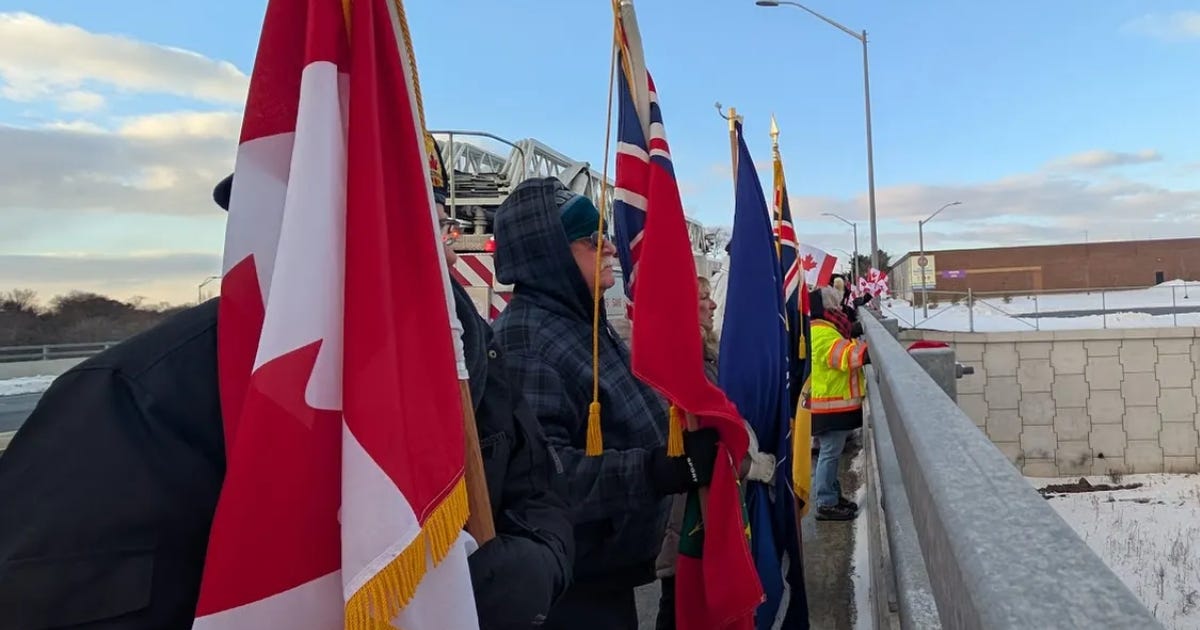 Veterans, families, firefighters, and other Canadian patriots gathered on Simcoe Bridge overlooking Highway 401, braving -6 C weather and winds, to pay respect for the Canadian Armed Forces (CAF) member, originally from Hamilton.