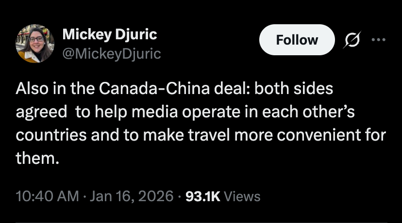 This is not a conspiracy theory. It is written into the partnership framework. Chinese state media, controlled by the CCP, will be given help operating in Canada, by the same government that treats independent domestic media as a problem to be managed!