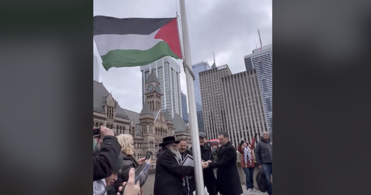 The flag-raising ceremony is to commemorate “Palestinian Independence Day,” with several cities across Canada raising the Palestinian flag on Monday.