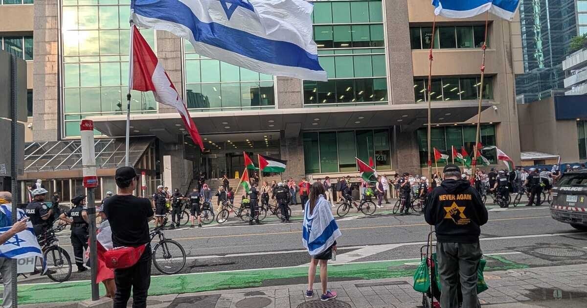 Israeli supporters and Palestinian activists faced off at the Israeli consulate in Toronto on Thursday, with supporters of controversial groups on each side.