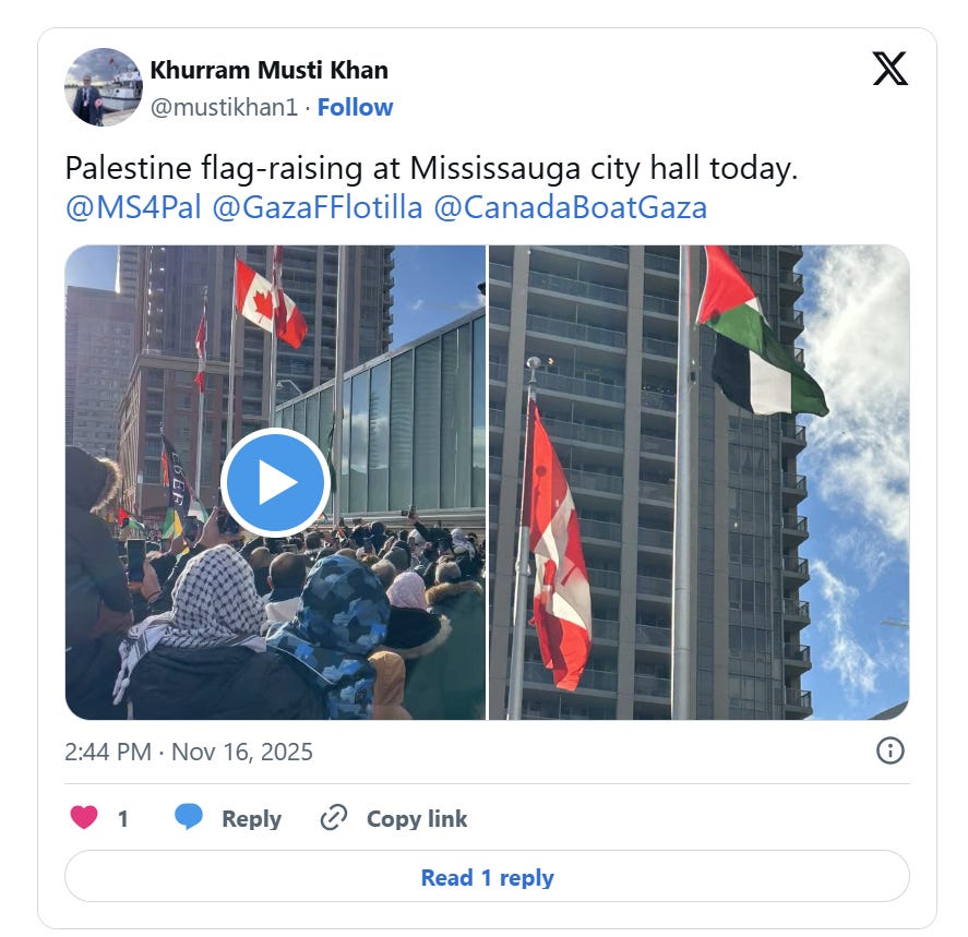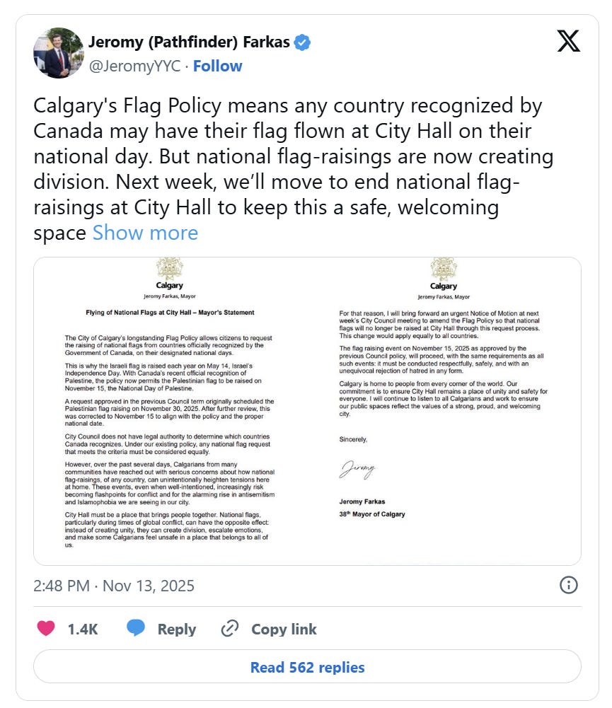"Several critics online are calling for a rule that would require municipalities in Canada to fly only Canadian, provincial, or municipal flags from public buildings." As it should be!