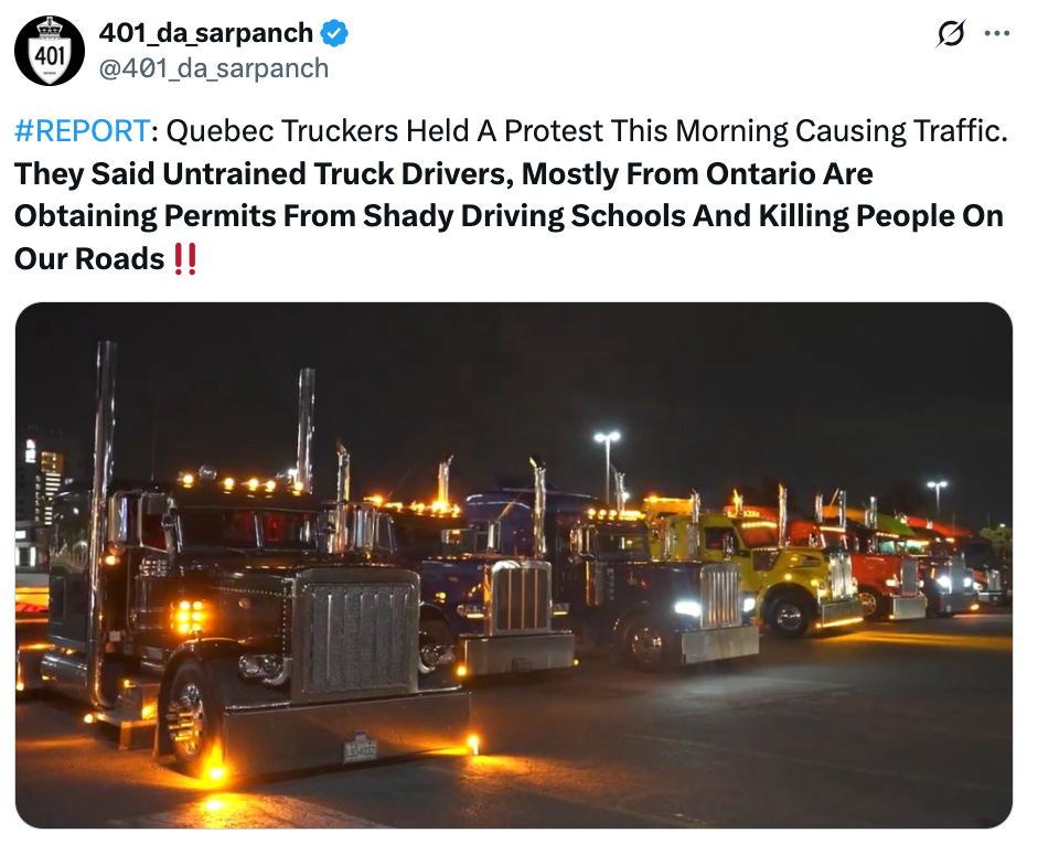 They took to the highways in Quebec and Ontario to protest the lax enforcement of transportation regulations.