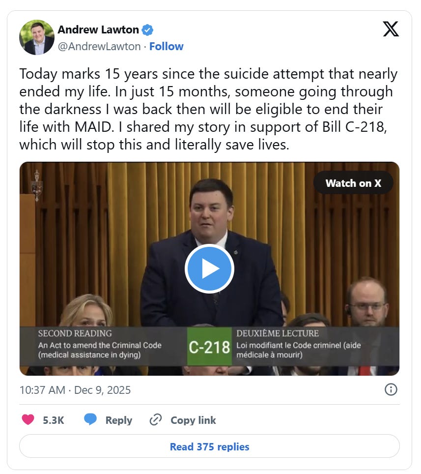 Earlier this year, Lawton launched the “I Got Better” campaign to oppose the 2027 expansion of MAID to people suffering solely from mental illness.