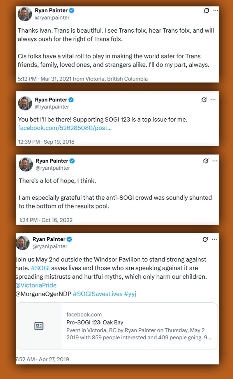 He posted in support of the SOGI curriculum in schools and took credit for organizing counter-protests against parents who opposed it.
