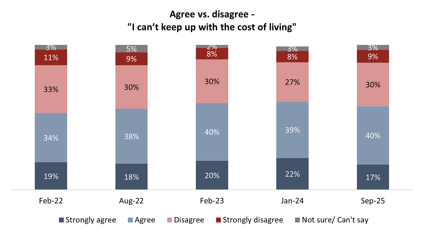In perhaps the most shocking number, 57% of respondents said they can’t keep up with the cost of living.
