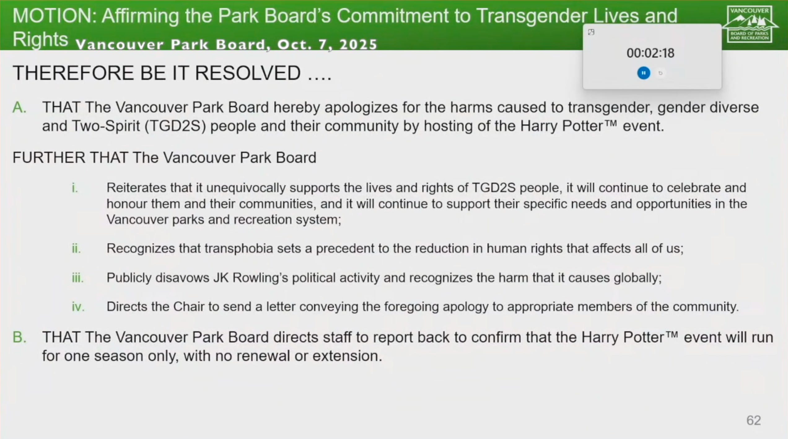 “The park board of Vancouver crying together, issuing a public denouncement of J.K. Rowling and promising to ‘rebuild’ public trust because of a Harry Potter forest walk for kids.”