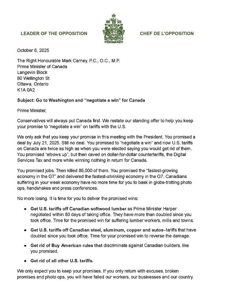 For his part, Conservative Leader Pierre Poilievre sent a fresh letter with specific demands for Carney’s trip.