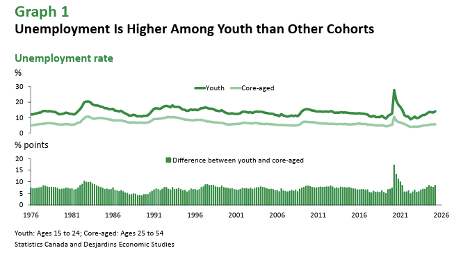 A recent Desjardins report links the trend to a rapid increase in temporary foreign workers, warning the resulting oversupply of labour is putting further pressure on young jobseekers.